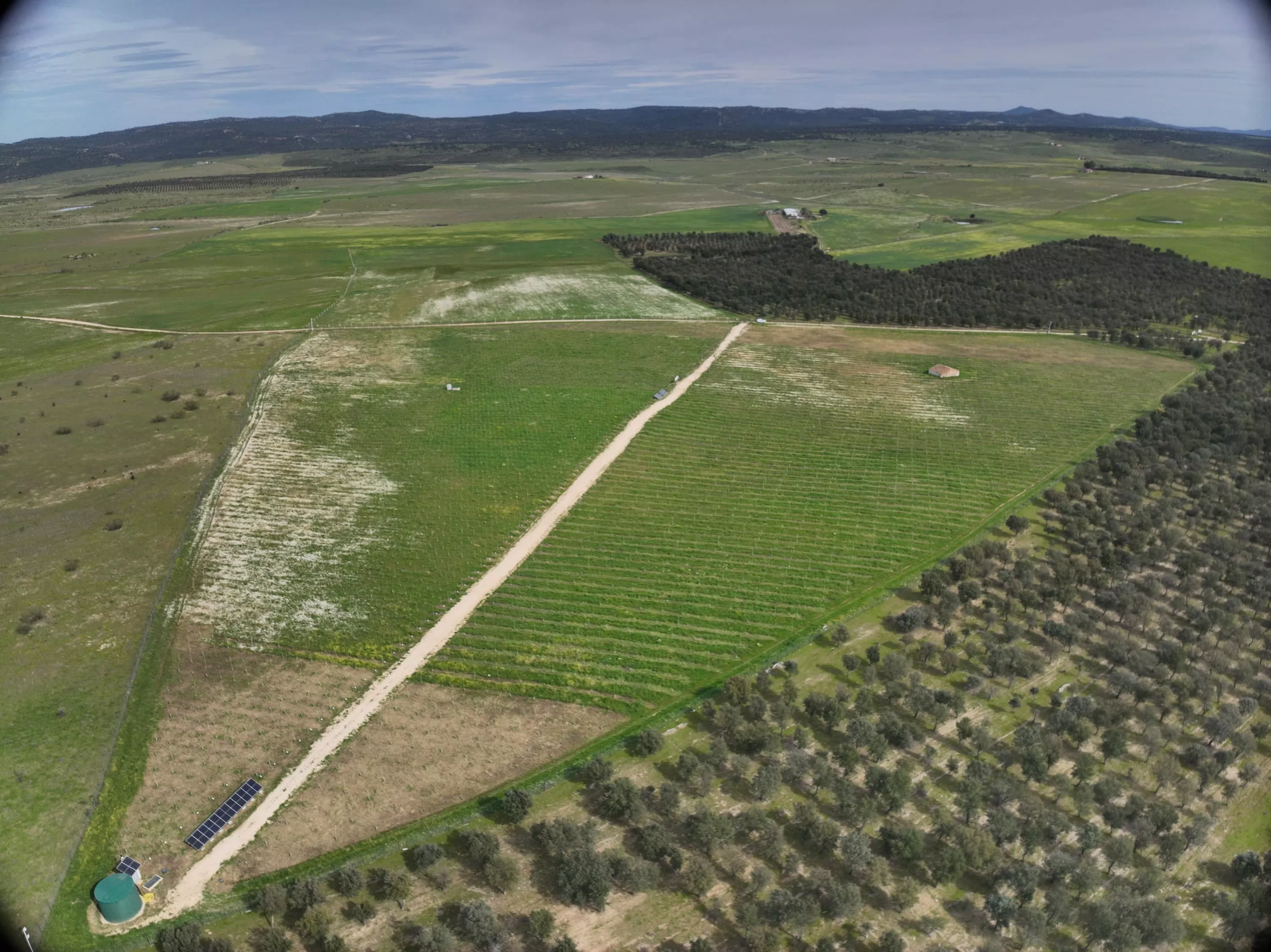 Esta infraestructura única, alimentada por energía solar, se extiende a lo largo de diez hectáreas y se compone de 7 lotes con diferentes intervenciones y densidad de árboles (distancia entre filas de 3 y 4 m). Cada lote es seguido minuciosamente mediante sensores que miden el crecimiento, el flujo de savia, la humedad del suelo y las condiciones climáticas (pluviometría, viento, humedad, etc.). Esta información permite dosificar de manera precisa los aportes de agua para no derrocharla, resultando 6 veces menos agua en comparación con las necesidades de una plantación arbórea clásica.